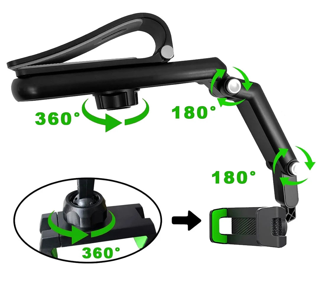 ـ يساعدك على ضبط زاوية رؤية هاتفك 360 درجة + 180 درجة، بكل سهولة لتتناسب مع مختلف احتياجاتك، سواء كنت تستخدمه لتوجيهك أو المكالمات.